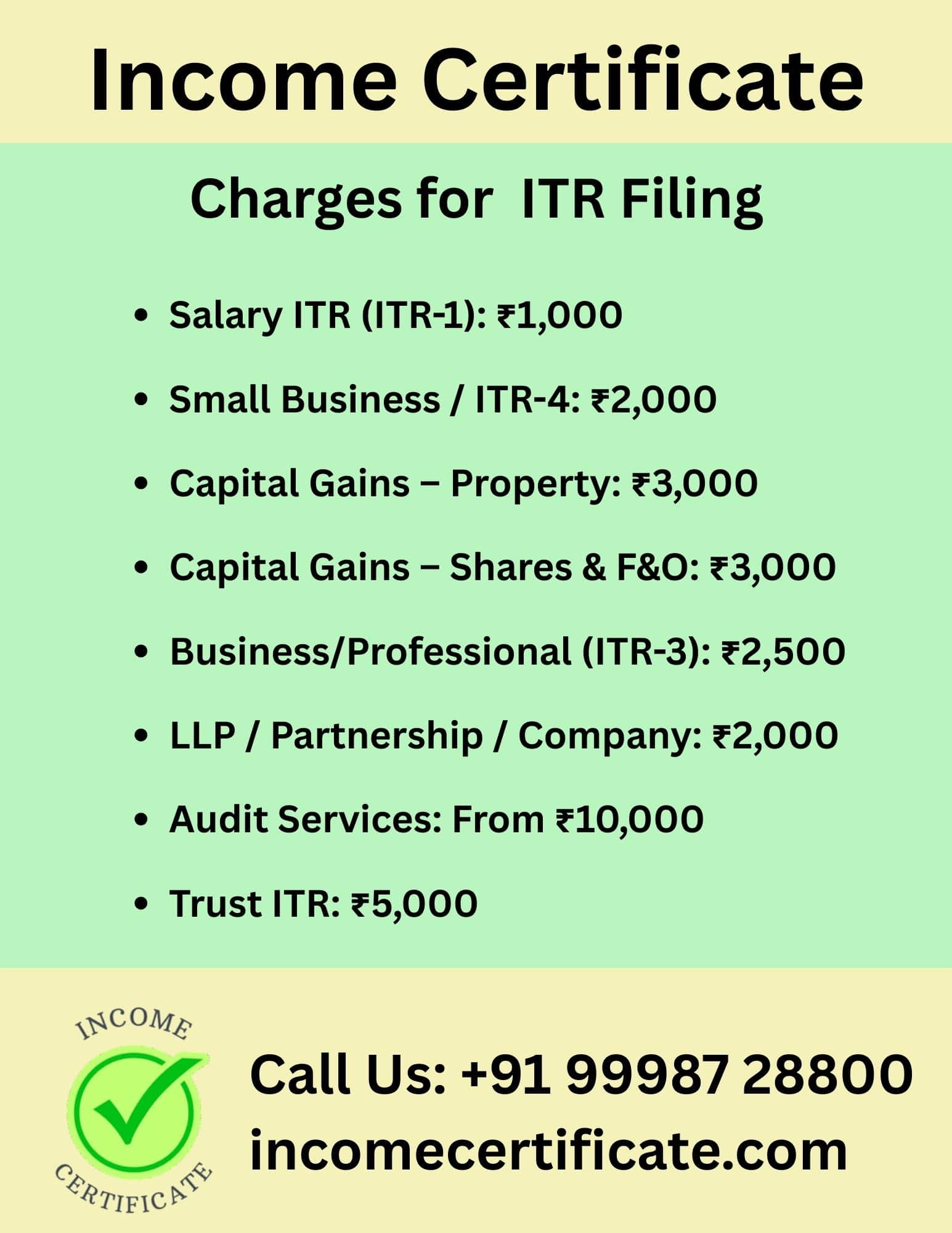 CA Charges and Service Fees for ITR Filing